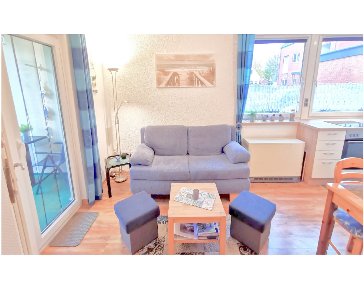Bright, cozy and maritime 2-room apartment, 36sqm, with balcony, ground floor, Good facilities incl. WLAN Internet, Alexa and parking. Swimming pool and sauna use possible during opening hours. Fitness studio directly at the house. Kitchen with window, oven, microwave+grill, fridge with freezer, coffee maker, kettle and toaster. In this special accommodation all important points of contact are very close - so planning your stay will be very easy.