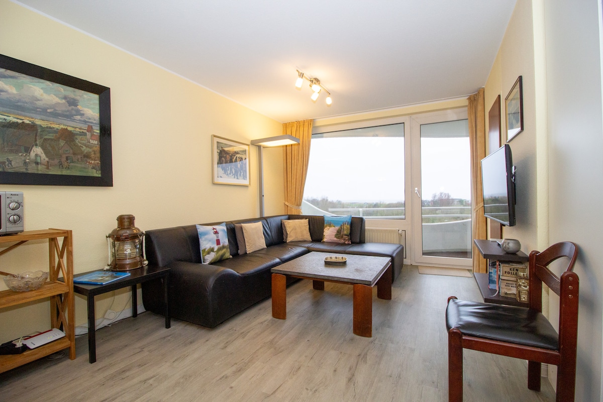 MOIN liebe Gäste, Hier könnt ihr ein in 2023 komplett saniertes und modern eingerichtetes Appartement für 1 bis 3 Personen, mit Einschränkungen max. 4 Personen, im 2. OG des Haus Atlantic für euren Strandurlaub buchen. Die 35m² Nichtraucher-Wohnung liegt direkt in erster Reihe ca. 50 m hinter dem Deich. Der Sandstrand ist also nur wenige Meter entfernt.