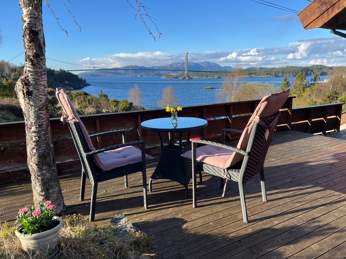 Velkommen til vårt lille gjestehus med balkong i Auklandshamn:) Her kan du nyte sjøutsikt og solnedgang Gratis kano i innsjøen«Storavatnet» er inkludert i prisen; 5 min å gå. Stedet ligger like ved en gård med sauer. Våre gjester har også gratis tilgang til stor brygge ved fjorden med godstoler og piknikkbord. Nydelig å fiske, bade, ha piknikk, eller nyte solnedgangen der (800 m) Idylliske Auklandshamn ligger ved Bømlafjorden. Fra E39 er det 9 km på smal, svingete vei Nærbutikk 1,5 km
