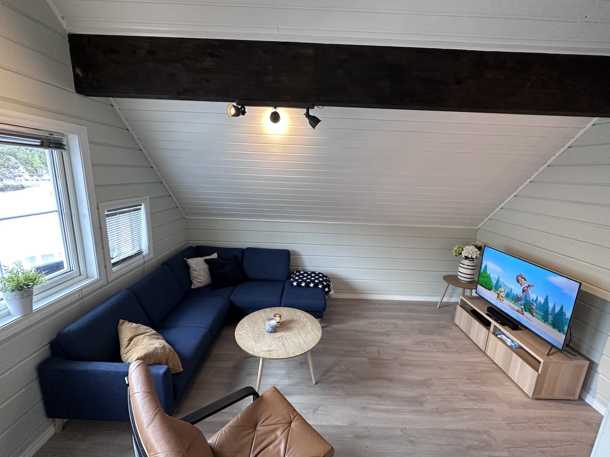 Liten leilighet ved kai. Lokalisert helt vest på Bømlo (mellom Bergen og Stavanger) med Nordsjøen like utenfor. Her kommer du nær naturen og elementene. Mange gode fiskeplasser og turstier i nærheten. Leiligheten er en del av et gammelt handelsted som stengte i 1993