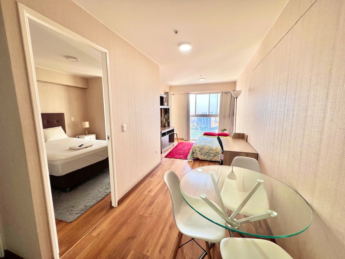 Beautiful apartment on Av. Salaverry near San Isidro, Real Plaza, universities, clinics, and embassies. Easy access to Historic Center, Campo de Marte, Magic Water Park, National Stadium, and Miraflores. Includes living-dining room, guest bathroom, kitchen, bedroom with en-suite, laundry, and balcony. Fully equipped, WiFi (400 Mbps), Smart TV in living and bedroom. Gym and pool in the building. Perfect for work or vacation, as a couple or family—you’ll feel at home.