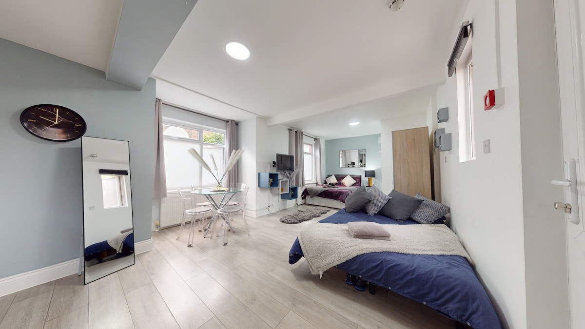 This modern 1-bedroom, 1-bathroom flat sleeps up to 4 guests and offers style, comfort, and convenience. Just a 4-min walk to Hendon Central Station and 10 mins to Brent Cross Shopping Centre, with Camden Market only 20 mins away. Enjoy a cosy bedroom, sleek bathroom with bath and shower, sofa bed, TV with Netflix, and a fully equipped kitchen. Kindly note that a refundable security deposit (authorised and held by your card provider, not charged to us) is part of the booking process.