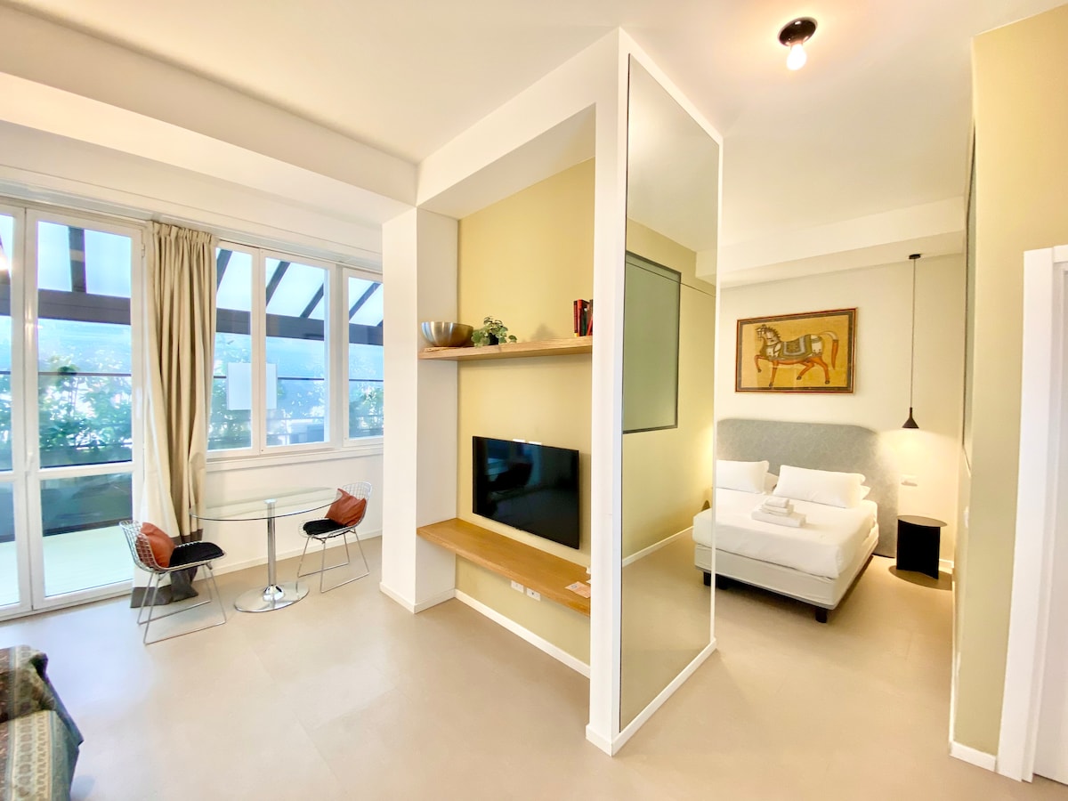 Extraordinary luxury open space apartment, with a modern and elegant design, enjoys an exceptional location and a wide range of nearby amenities. The large open space gives a bright and welcoming atmosphere, embellished with high-class furnishings and refined details. It is located near the Navigli district, with the tram stop right in the immediate vicinity which allows you to reach the Duomo and other distinctive attractions of the city in just 15 minutes.
