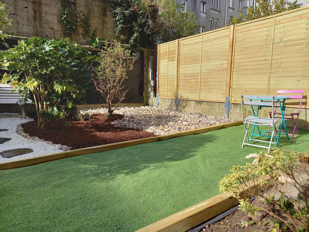 Studio de 24m2 avec terrasse privée toute équipée orientée sud pour vos moments de détentes et repas (4 pers). Vue dégagée jardin et mer. Buanderie en souplex. En RDC d'un immeuble de 3 étages dans une rue résidentielle calme et peu passante. Entièrement rénové en juillet 2025 dans un style urbain et industriel. Le logement est équipé d'un lit mezzanine de 140x190 et d'un canapé convertible de 135x195. Le propriétaire auteur-compositeur-interprète laisse une de ses guitares à votre disposition.