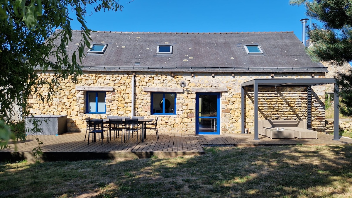 Vous recherchez du calme tout en étant proche des plages et du GR34,alors cette location est pour vous. Entièrement rénovée dans des matériaux écologiques, vous profiterez de ces 2 terrasses afin de profitez du barbecue ou de son jacuzzi situé dans un patio. Il est demandé de ne plus faire de bruit à l'extérieur à partir de 23h00. Pour 4 personnes maximum (enfants inclus). Toutes les iles bretonnes sont accessibles par bateau en ayant un départ à proximité.