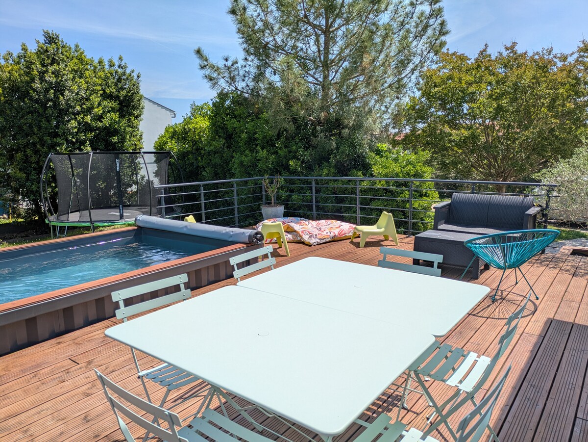 Piscine , Sauna Profitez d'un superbe séjour entre amis ou en famille dans cette longère charentaise située à 15 minutes en voiture seulement de ROCHEFORT. Cette propriété offre tout le confort moderne nécessaire jusqu'à 6 voyageurs grâce à ses 3 chambres et ses 3 salles d'eau/bain. Sa terrasse aménagée et sa magnifique piscine chauffée de 4mx10m vous permettront de profiter du soleil, de vous rafraîchir et de prendre vos repas en plein air . Garage privé, stationnement intérieur securisé