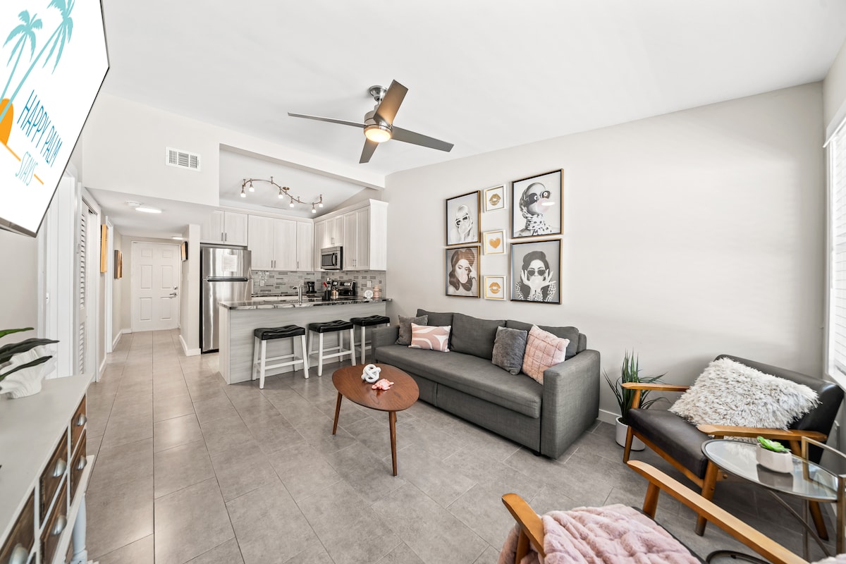 Stay at Villa Serenō, a rare Cocoa Beach find nestled between the ocean and river. Just a 2-minute walk to the sand, this luxe 2BR/2BA villa offers hammocks, a private balcony, and rocket launch views. Designed with calming coastal décor, an open layout, and modern kitchen, it’s the perfect blend of prime location and serene comfort. 🌊✨🌴🚀