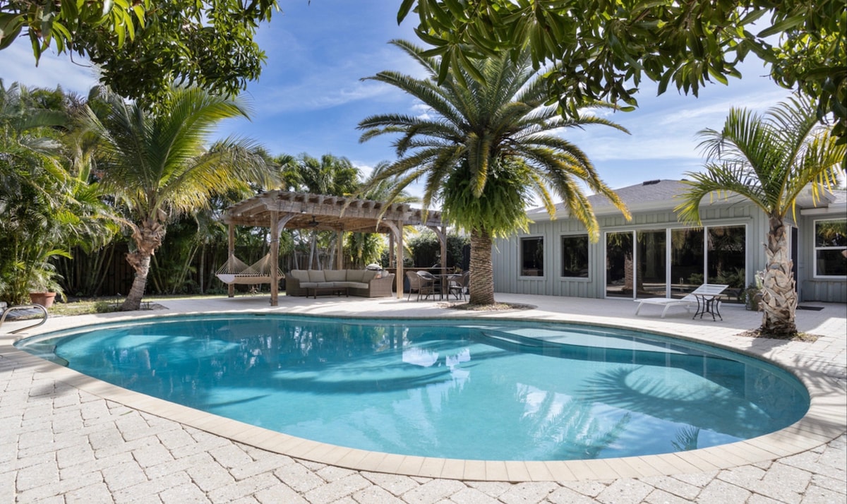 Spend your days soaking up the Florida sun, walking or biking to the beach. No need to pack your beach gear, we’ve got you covered. OR, lounge outside in the 40-foot saltwater pool in the lush, fenced backyard. The MCM fabulous Retro Chic 3BR, 2BA home is your quintessential beach-side home. Nestled in a quiet, family-friendly neighborhood, Indian Harbour Beach offers guests a haven from the more tourist-heavy areas, but within driving distance of all the Space Coast has to offer.