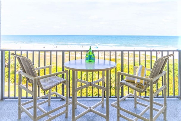 A wraparound balcony that offers the most beautiful views from the living room. Master bedroom opens up to the balcony. Three flat screen TV's & WiFi available. Beach chairs are provided for your enjoyment. Watch rocket launches and cruise ships from your balcony. Sandcastles is a well maintained complex with a heated pool, hot tub, community room, tennis courts, and so much more! Come enjoy your slice of paradise... the sand between your toes and the cooling waters of the Atlantic Ocean!