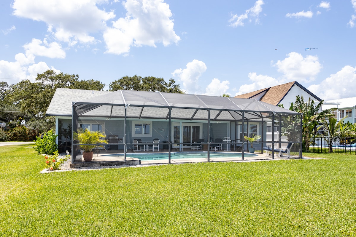 Unwind in this intercoastal waterfront paradise with breathtaking sunrise views over the Banana River. Spot turtles, dolphins & manatees from your private dock. Retreat into elegance with an upscale split floor plan coastal home with private pool. Mins from Cocoa Beach, Port Canaveral & Kennedy Space Center. Disney & Orlando are 40 mins away. 🐠🚣♂️ We provide kayaks, fishing poles, beach chairs & pool toys! Send us a message about the ultimate getaway with your own private pool & dock