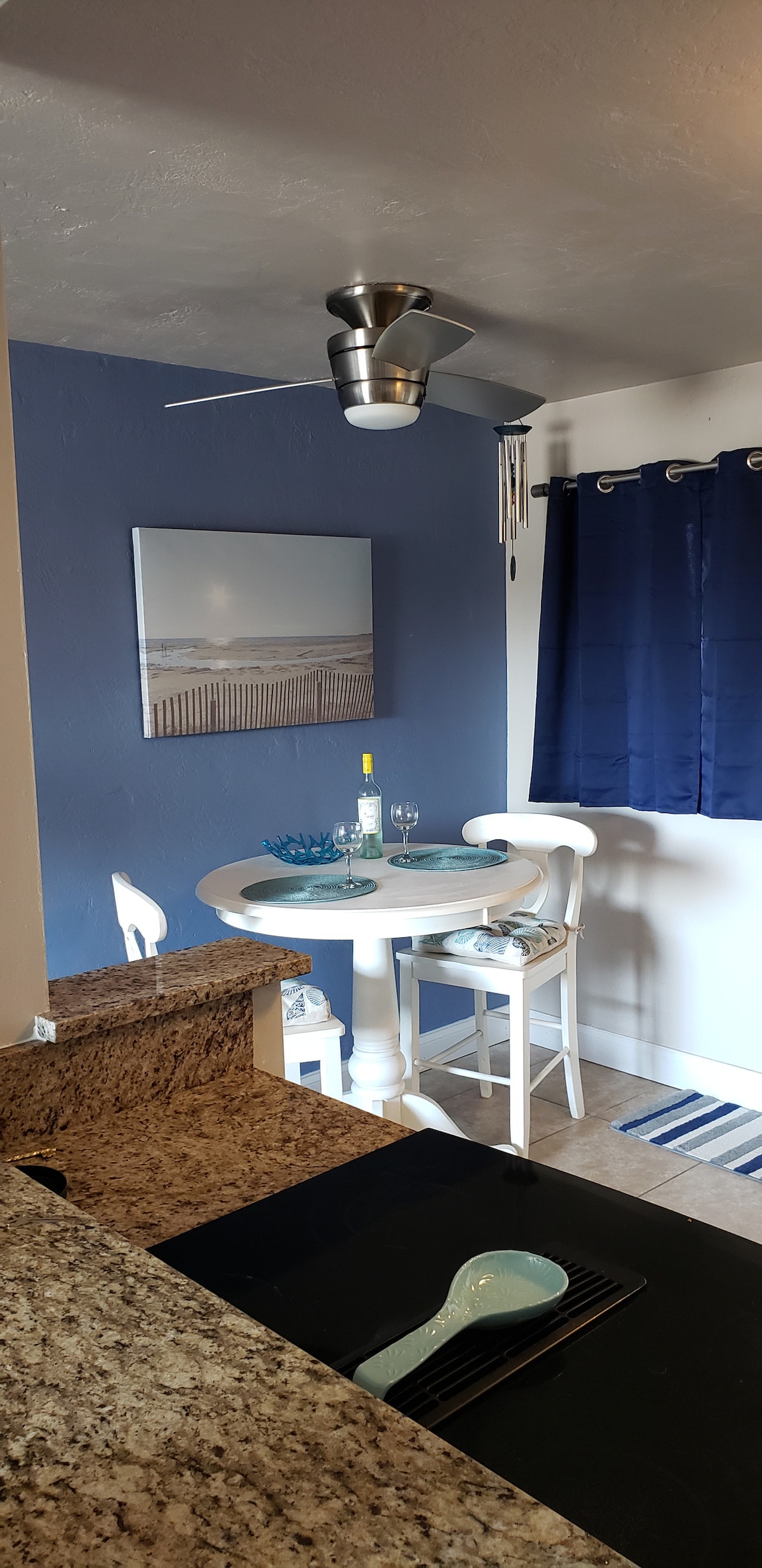 This airy studio apartment is less than a minute's walk from the beach and is furnished with a queen size mattress. The studio is equipped with washer/dryer, dishwasher, 2-burner cooktop, and stainless steel appliances. Outdoor space include a covered patio with table and chairs and a paved common area patio. Beach chairs and colorful beach towels available in every unit. 1-mile from downtown Cocoa Beach restaurants and bars. 1-hour drive to Orlando International Airport and theme parks.