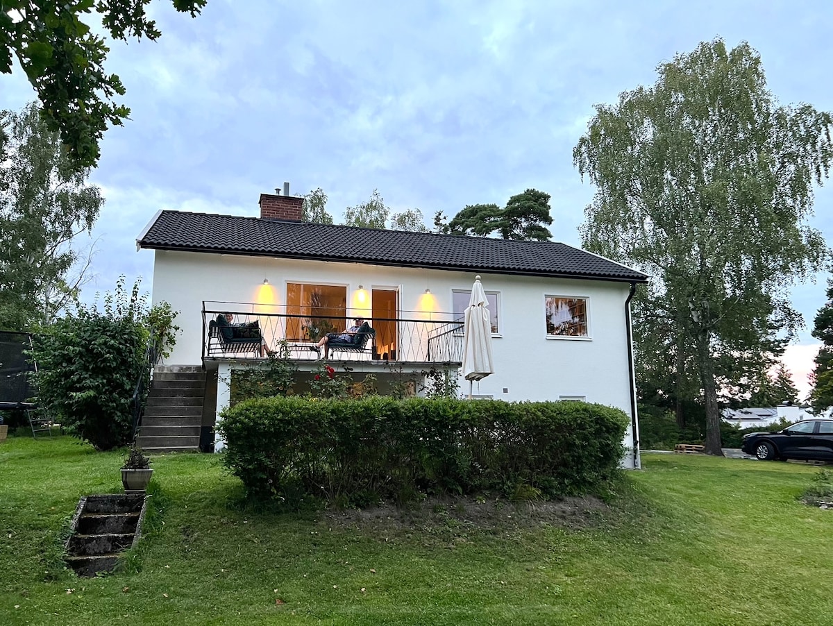 Our house is located close to Kottlasjön ( a lake), Breviksbadet (swimmingpools), the sea, supermarket, two restaurants, cafés, playgrounds, runningtracks in the forest and it is ten minutes drive from Stockholm city. You will like it as it is very close to beautiful nature with water (Långängen recreation area) and at the same time you have easy access to the city (public transport 150 m from the house, station Brevik). Our house suits couples and families with 1-3 kids. Baby bed is availabe.