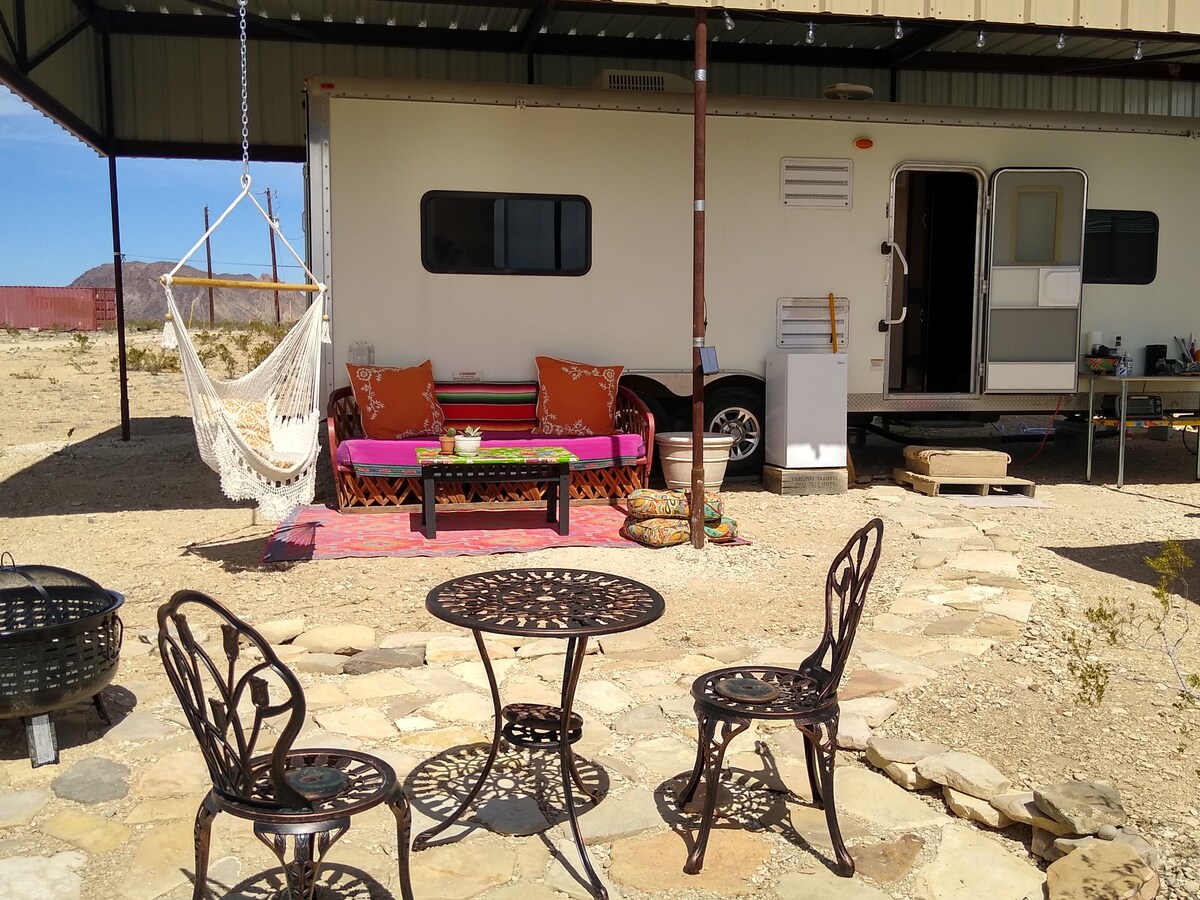 The Cozy Caravan ll located in walking distance from the Terlingua Ghost Town sits on 5 acres of private land and is equipped with all the amenities needed for a comfortable stay. The trailer is great for enjoying the quiet mornings, sunsets and the milky way, after a day of exploring the Big Bend. The entrance to Big Bend National Park is a ten minute drive to the West Entrance Station and a 15 minute drive to the Barton Warnock Center in Big Bend Ranch State Park.
