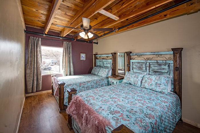 The Holland Double Queen Suites are a fantastic way to share the experience at Henry Trost's Alpine hotel as each features two queen-size beds, a living room with a sleeper sofa, and a bath with a combined tub and shower. There is a door between the bedroom and living room for privacy. Amenities include in-room coffee, cable TV, and complimentary Wi-Fi.