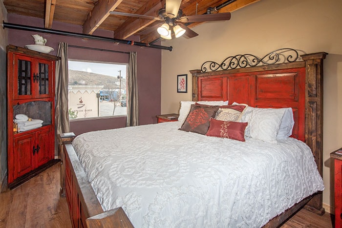 Alpine City Place is located right in the heart of Downtown Alpine, Texas. We have 5 king rooms with individualized decor and private ensuite bathroom featuring standup tile shower. Views will vary - street or courtyard (room automatically assigned). Step outside and you are right in the middle of town. Walk to shops, art galleries, coffee shops or take a stroll through the alleys and check out the murals. Come back for some food, drink or live music downstairs at Amigo Sports Bar & Restaurant
