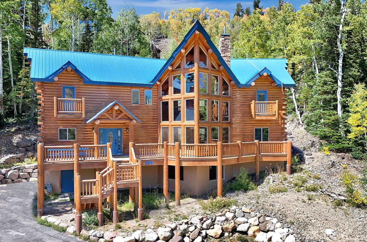 Perfectly located in the heart of Brian Head on the hilltop overlooking the Giant Steps ski resort offering the best view on the mountain. Spacious 5 bedroom & enclosed bonus room comfortably sleeps 21 w/ a 12ft TV wall, air hockey & ping pong. Wrap around covered deck with jacuzzi. This cabin allows for premium relaxation & for lovers of the outdoors there is an abundance of exploring just a few steps away. Less than a mile from either ski resort. Experience Brian Head with luxury & comfort.