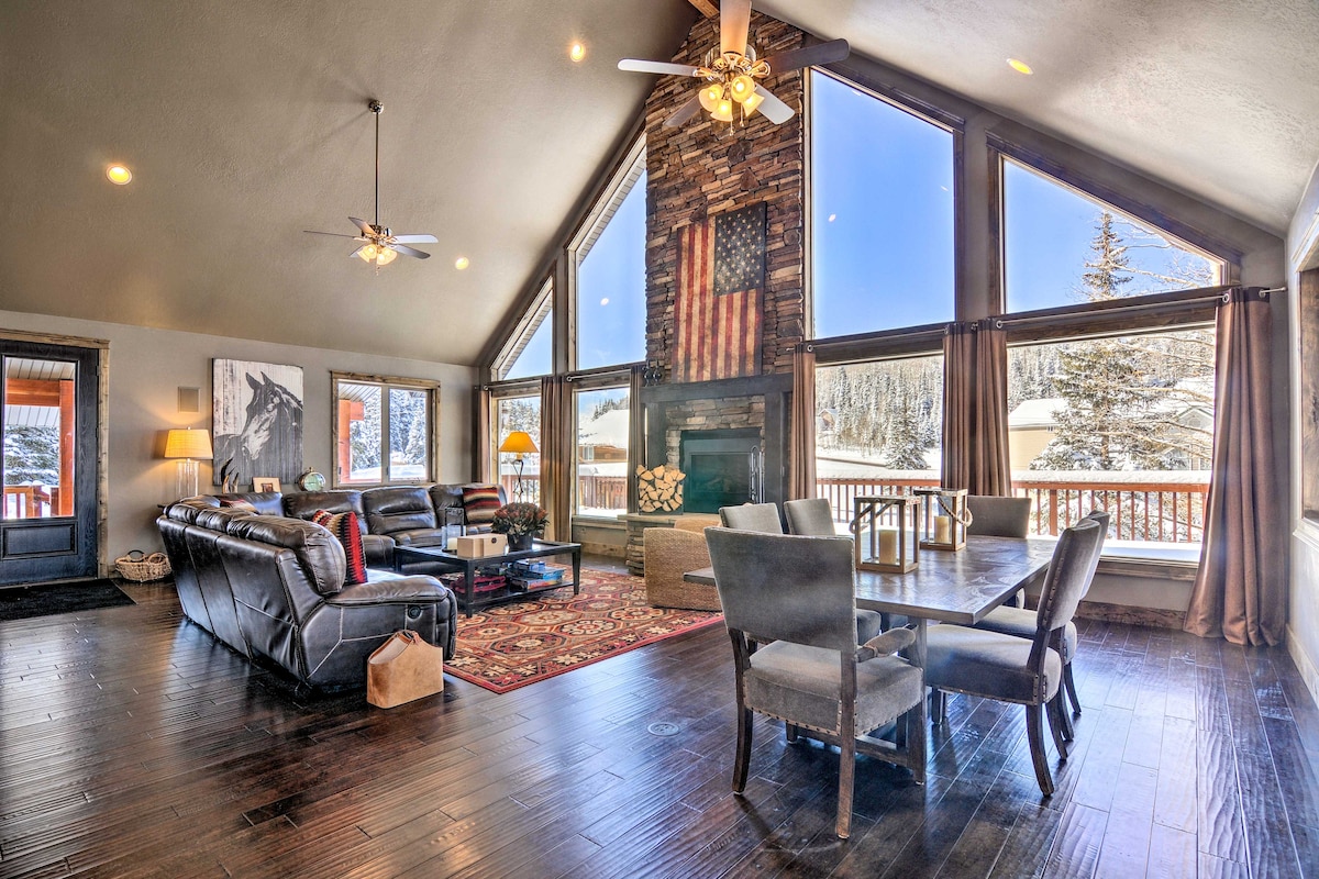 Welcome to Stone's Throw Cabin, a spacious home away from home for family retreats and gatherings to work, play and enjoy peace, quiet and crisp mountain air. Cabin features: full size pool table, arcade games, poker table, Smart TVs with DISH network, Starlink WiFi, private hot tub, firepit and multiple fireplaces to keep busy, or relax on the wraparound deck. EV charger available Fully equipped kitchen CPU workstation with monitor. Cabin is 1/2 mile from ski lifts. Must be 21+ to rent.