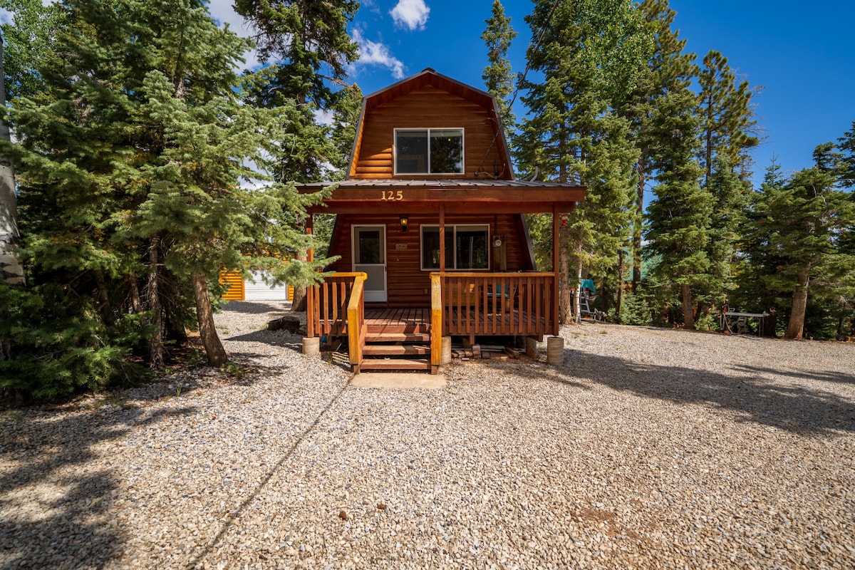 Private stand-alone cabin with panoramic views of the Navajo lift, forest, and sunset skies—enjoy it all from your private deck and hot tub. Easy level entry with off-street parking just off the main road. Less than 1 mile to Giant Steps & Navajo Lodge. Inside: wood-burning stove, big-screen TV, Xbox, family games, and TVs in every bedroom. Two bedrooms + loft (loft has Queen bed + full sofa sleeper), year-round mountain base—steps to trails and central to Bryce Canyon, Cedar Breaks, and Zion.