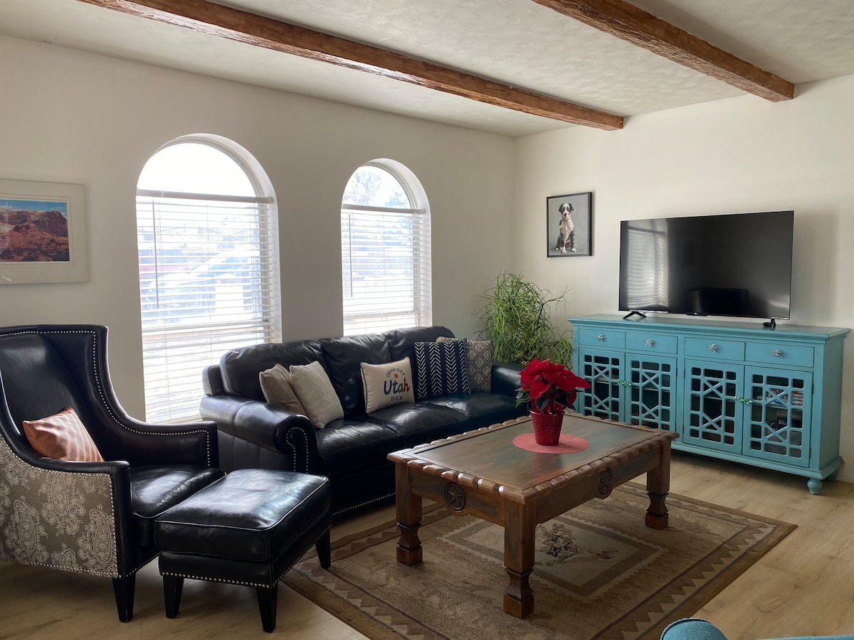 -RELAX in a bright, open-concept layout home, perfect for rest & quality time. -Minutes to the Shakespeare Festival/SUU; an easy drive to Zion, Bryce, and Brian Head. -Single-level layout offers the easy access and "no-stairs" comfort. -Fast Wi-Fi for remote work or streaming shows. -COFFEE STATION & well-equipped kitchen for cooking/entertaining -Great location on Main St Behind Wingate Wyndham. Minutes from I-15 on/off ramp -CEDAR CITY, the perfect basecamp for your Southern Utah adventure!