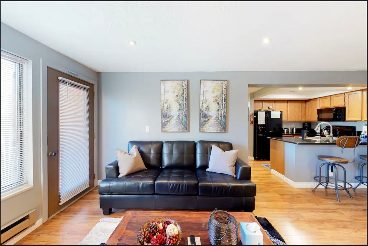 2 Bedroom, 2 Bath Condo Located in the Ski In/Ski Out Evergreens condominium complex. First floor unit, no stairs. Front door unload and load. Ski right to front door off the Alpen Way run. Easy walk to chair 8 or 1. Perfect for summer and exploring the national parks. Includes 1 space in underground garage. Bigscreen TV in Living Room w/Netflix. Flatscreen in room 2. Leather couch with 3 fold flat recliners. Fully stocked kitchen. Great view of the mountain off the deck.