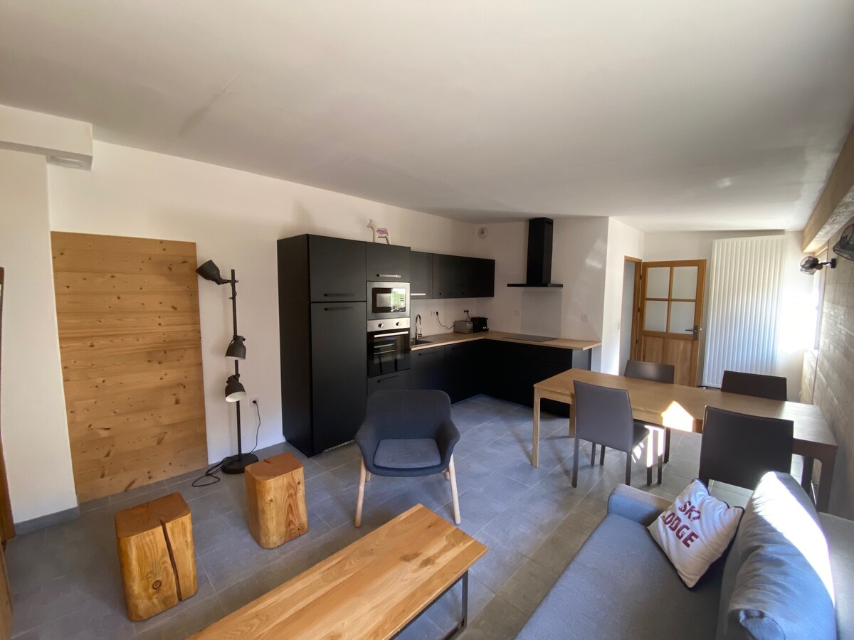 Venez vous ressourcer dans notre appartement en rez de jardin. Refait à neuf avec des matériaux de qualité vous pourrez vous reposer ou profiter des activités environnantes. A 10 min à pied de la remontée mécanique du Prorel l'appartement dispose d'une place de parking devant la maison. Très bien équipé vous pourrez profiter de l'électroménager mis à disposition ou des petits appareils pour vous concocter fondue ou raclette. La cuisine vous ravira pour son côté pratique.