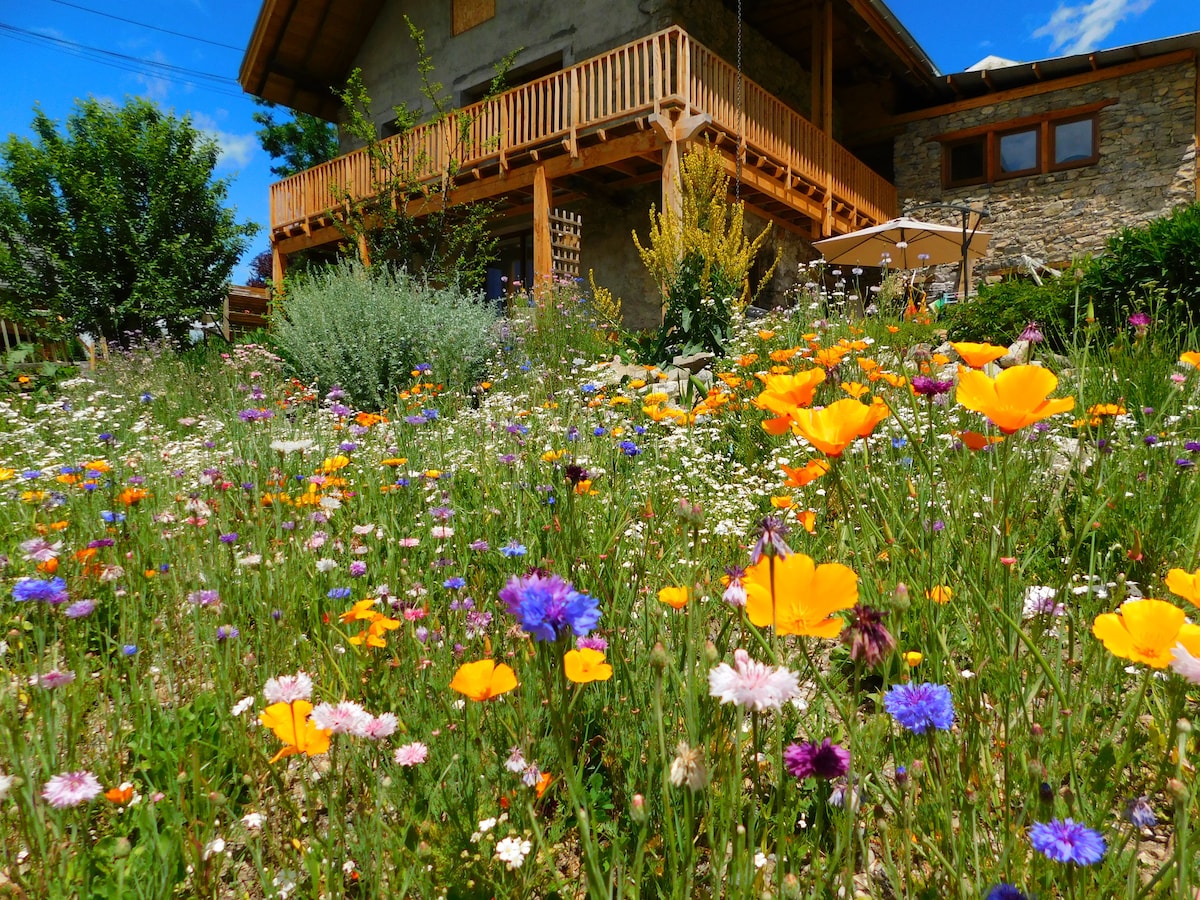 Old renovated barn located in a quiet village near the ski station of Les Orres and 15 minutes from the Serre-Ponçon Lake Space and comfort with 120m² for 6 pers. Equipped kitchen. Wifi. Three rooms each equipped with a bathroom with shower and toilet, one with freestanding bath and shower. A large living room, a terrace and a large balcony offer stunning views of the surrounding mountain. Skiing, snowboarding, ski touring, snowshoeing, giant zip line, ...raclette...