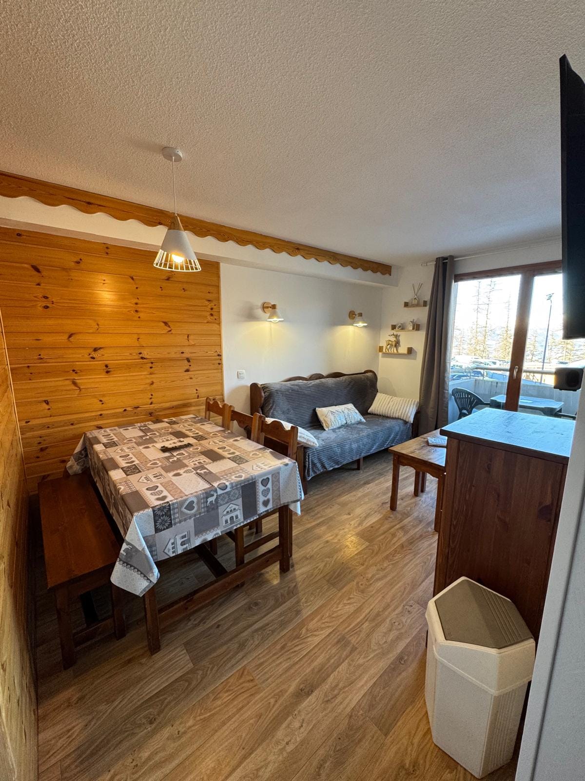 à 1850m d'altitude, petit studio 21m2 rénové, avec un canapé lit pour UN COUPLE et un petit lit en hauteur pour un ENFANT de 6 à 14 ans), bien équipé et très fonctionnel plein sud avec très jolie vue et balcon sans vis-à-vis, au calme et proche des pistes de ski et de randos, et du centre de la station à pied. le studio petit est fait UNIQUEMENT POUR UN COUPLE ET UN ENFANT et n'est PAS ADAPTÉ AUX PERSONNES A MOBILITÉ RÉDUITE STUDIO 1er étage LES LAUZIERES appt 202. au bout de la Rue des Soleils