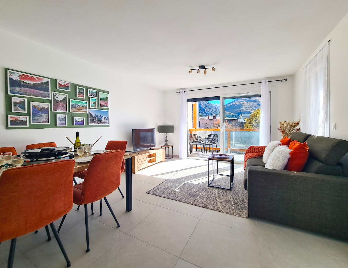 Venez découvrir ce bel appartement neuf, situé au cœur de Briançon, juste en face de la télécabine du Prorel. Une adresse exceptionnelle pour profiter pleinement des joies de la montagne, aussi bien en hiver qu’en été. Les commerces, restaurants, transports et la gare SNCF sont accessibles en seulement quelques minutes à pied. Avec son ambiance chaleureuse, et sa terrasse ensoleillée offrant une superbe vue sur les montagnes, c’est le lieu idéal pour un séjour détente en famille ou entre amis.