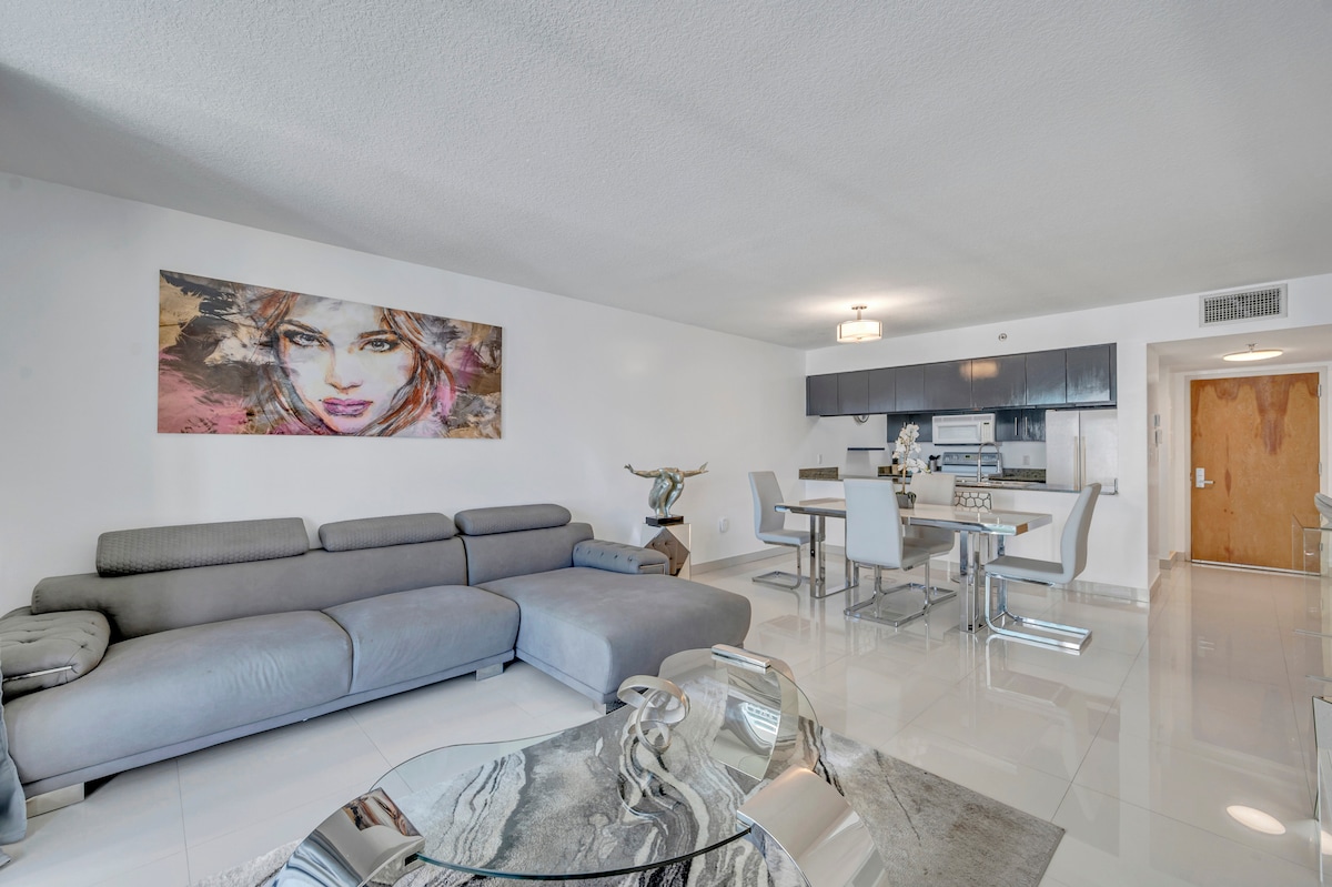 Amazing studio-apartment in the heart of Downtown Miami. Beautiful view of Miami skyline. FREE parking in our secured garage during the stay. Trending restaurants and shops at walking distance. Bayfront Park Market place, the Brightline train terminal station, METRORAIL and METROMOVER (free transportation) stations nearby. The Brickell City Center mall at walking distance. Enjoy our place's modern ambience. Great for couples, solo adventurers, business travelers, and family with kids.