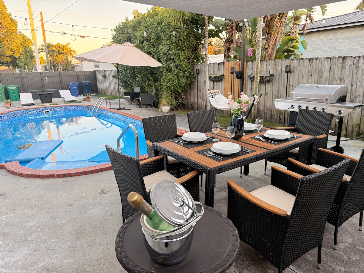 Welcome to Casa Ideal in Little Havana! Updated 3BR, 2BA home perfect for families or groups. Relax in the spacious living area with 65” Smart TV, dine at the 8-seat table, or work from the dedicated desk. Step outside to a backyard oasis with turf, covered patio, grill, outdoor TV & 120” projector. Enjoy mini golf, ping pong & games. Just 10 mins to Brickell, Coral Gables & Coconut Grove, 20 mins to South Beach. Family amenities included!