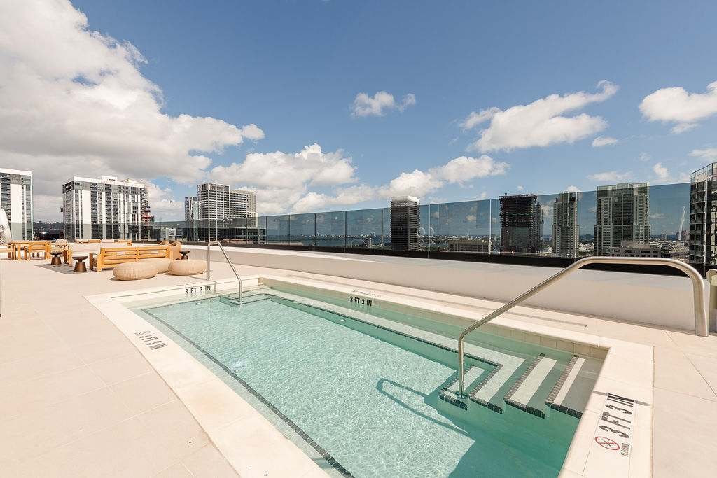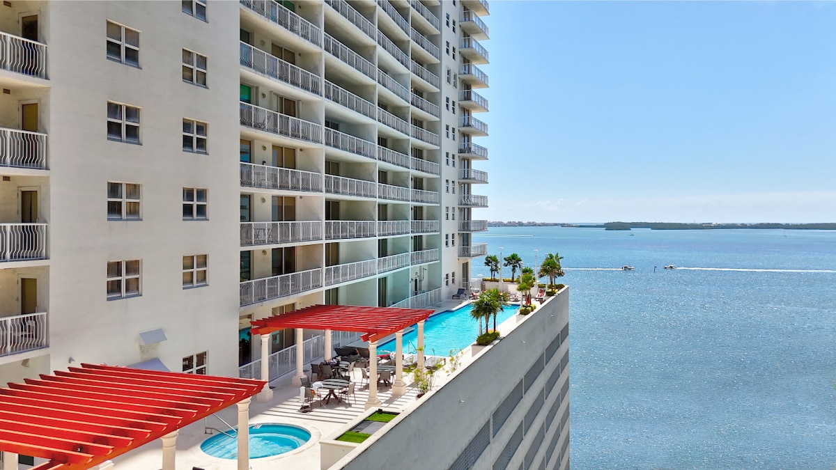高层公寓,带健身房、屋顶泳池和海湾景观