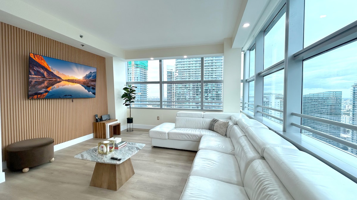 Our unique 5-star HIGH floor corner unit condo is fully furnished with an equipped kitchen located on one of the highest floors at the W Hotel which has the biggest SWIMMING POOL in Miami. We are centrally located along the Miami river with amazing sunset views. Walking distance to City Centre Mall, Whole Foods, restaurants and bars. Just a short drive to the design district & south beach. THIS IS THE PLACE TO STAY! Airport transfer, housekeeping, car rental available based on availability.