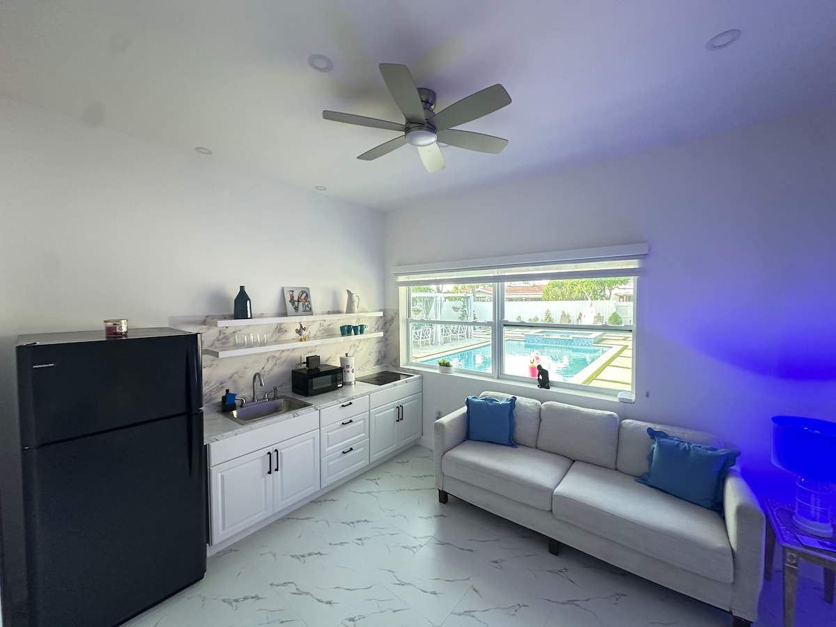 Private entrance offers bungalow experience to the one bedroom space, walk in closet en suite bathroom. Shared structural walls: sounds do travel. Exclusive access to pool (unheated), BBQ, stove top, small outdoor fridge, and “makeshift” sink. Plenty of privacy! 20 minute stroll to Coco Walk; restaurants, lush nature and historic sites. Nestled between Coral Gables ; South Miami and Brickell. Close to University of Miami; quick access to airport and beaches. Merry Christmas Park’s a block away