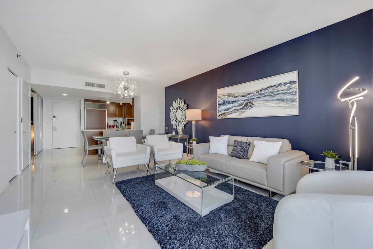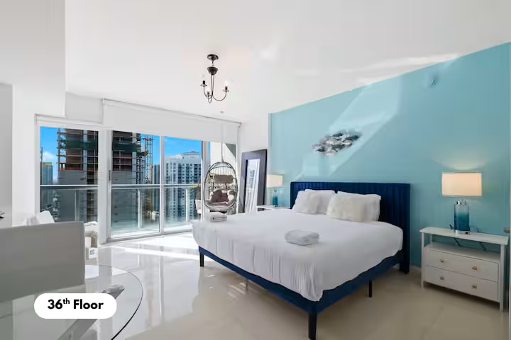 Enjoy this centrally-located Penthouse (42nd floor.high ceilings) in the heart of Miami. Mins 2 Bkll City Center, Beaches, Design D, wynwood, n Best restaurants.Tastefully Remodeled n Furnished, Sparkling CLEAN, BRIGHT, modern 1bed 1bath w Amazing CITY VIEWS n Partial Ocean views. Fully equipped Kitchen, Laundry, Cooler n Beach Chairs. King bed n Sofa b. Smart darkening Shade 4 Long nights.Smoking, Pets n Events NOT allowed. Guest must send identification n e-mail to sign registration.