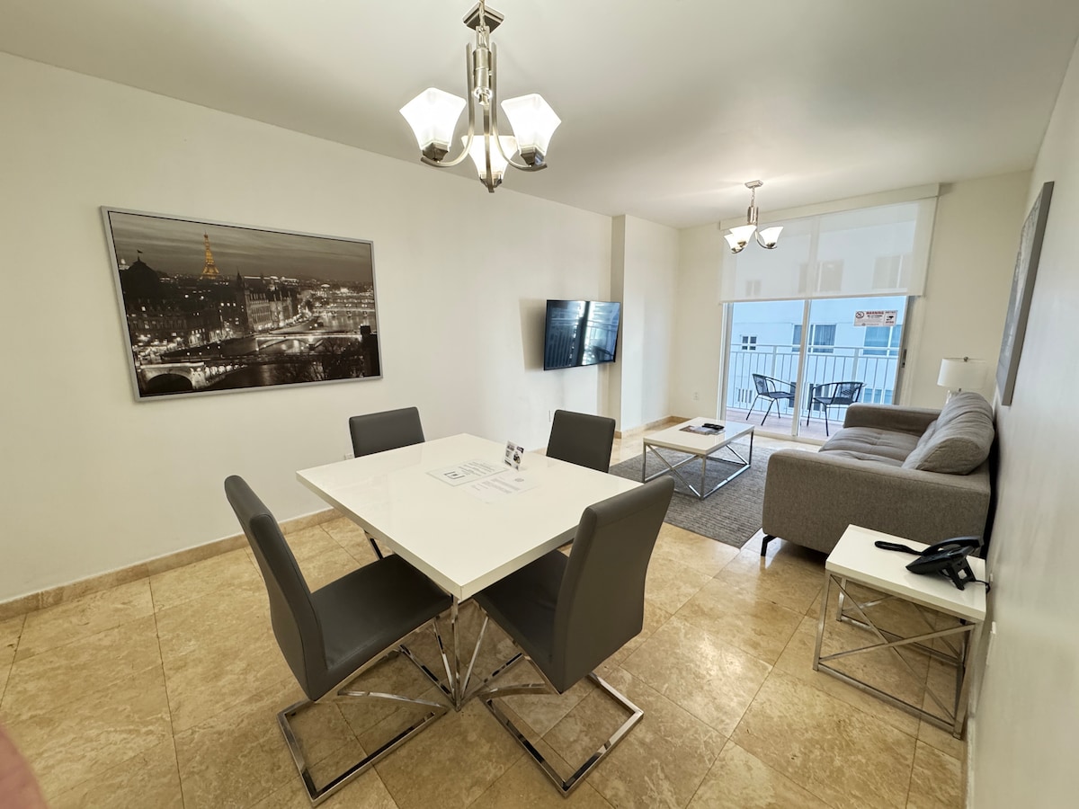 Entire luxury condo at Quadro in the Design District. Fully equipped - Free parking, coffee, Wi-Fi & cable. The building features amenities in the 6th floor including a fitness center, a lounge with co-working area & a game room, an outdoor dining area with BBQ's and a great pool.Enjoy guest exclusive neighborhood discounts. Walk to hundreds of designer shops, restaurants, bars, art galleries, & more! 10-min drive to Miami’s international airport, 15-min drive to Miami Beach.