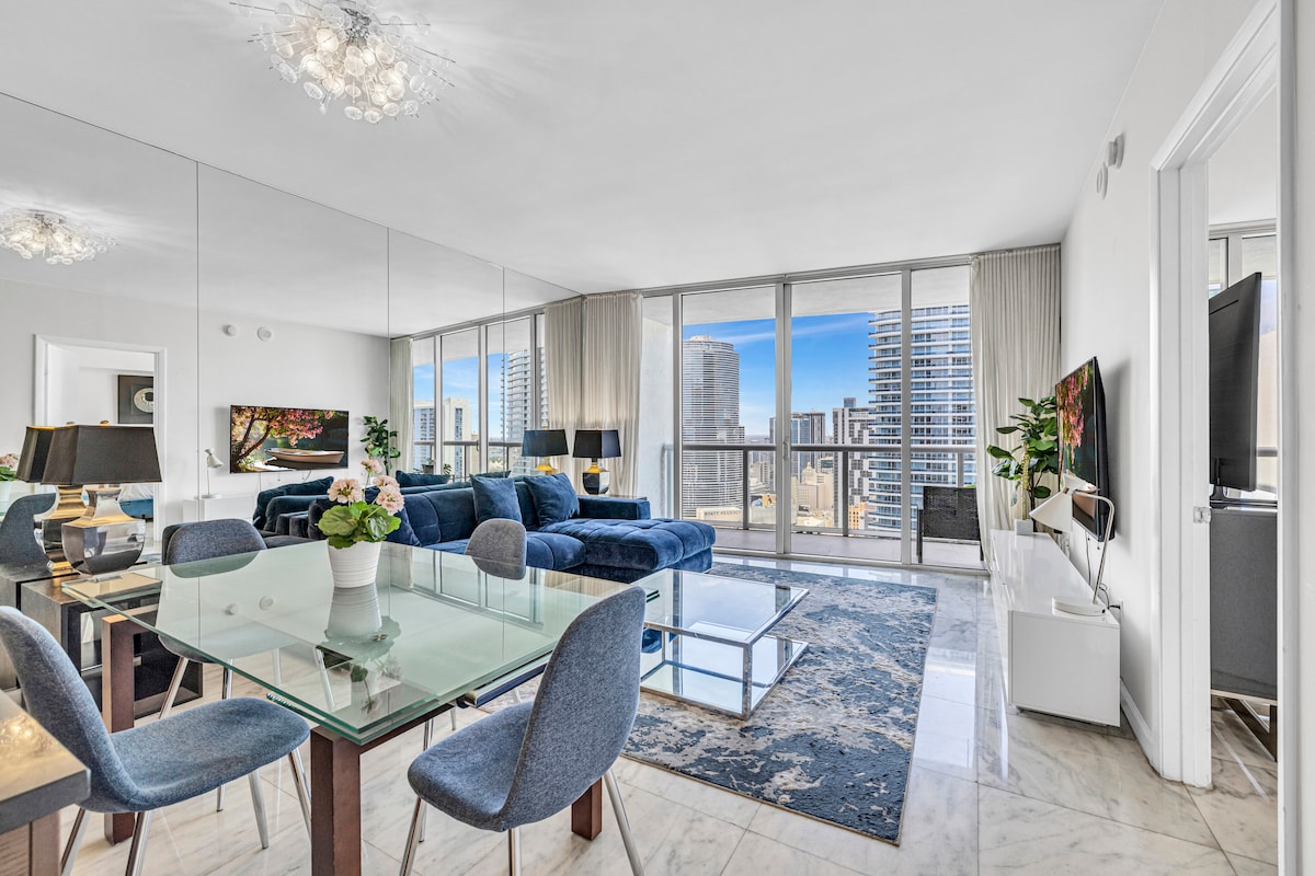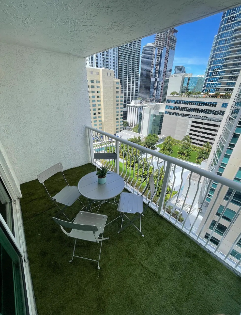 Unwind at this stunning Condo in the heart of Brickell, Miami. The Condo was recently renovated with new white and gold finishes for a luxurious yet relaxing feel. New LED lights were installed to allow you to set the ambiance of the unit at night. Smart TVs, Washer and dryer, new appliances, King size bed, pull-out sofa, free access to gym, pool and Free Parking! But the highlight of them all is the oversized balcony with patio furniture all while glancing at our beautiful Biscayne Bay.