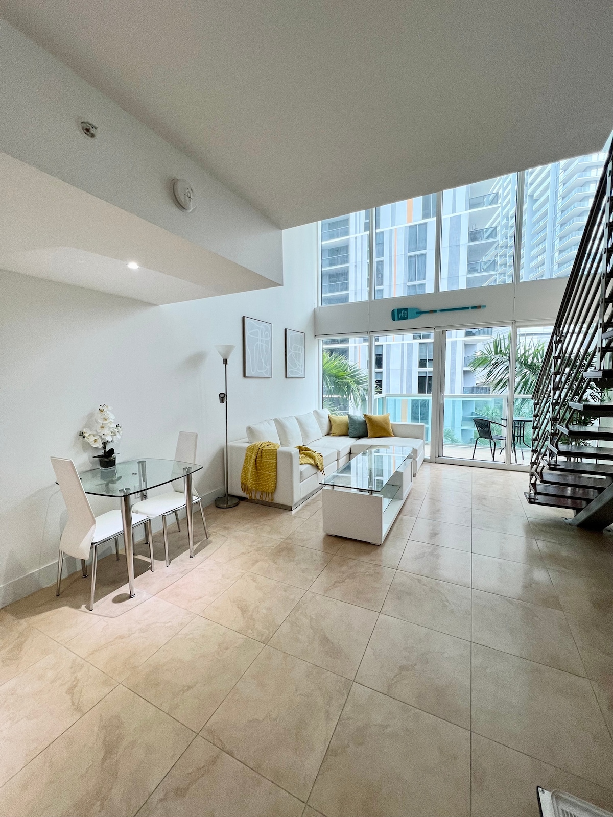 Stunning one bedroom condo located in the best area of Brickell just minutes away from Brickell City Centre and Mary Brickell Village with restaurants, bars, shops and entertainment. About this Space -Approx.825 sqft of natural light filled space with gorgeous bay and city views and a large private balcony with dining table and large patio couch -High-speed Wi-Fi -1 free assigned parking spot -Pool, jacuzzi, steam room, game room, state of the art gym, and business center