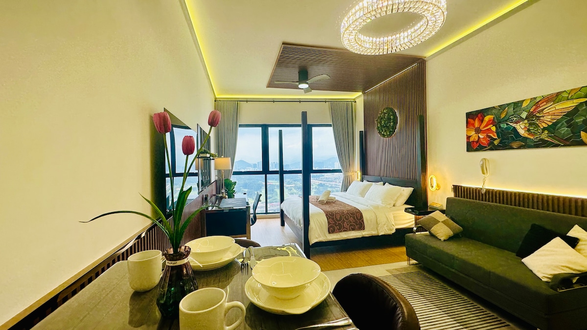 Why stay at The Palm's Junior Suite at Lucentia Residence - the views of KL - beautifully decorated with a fun spirit - centrally located - near public transportation - fast wifi - TV with Netflix, Apple TV, Prime Video - 2 gorgeous pools - gym, pool table, BBQ pits, paino - super host manager - garage parking - recommended for 2, max can sleeps 3 - LaLa Port Shopping Mall & entertainment street are attached - grocery, drug store, and many restaurants are attached - movie theater Gsc beside