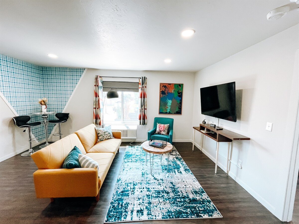 Landmark renovated 1929 Hotel. Stylish designer-decorated 1 bedroom elevator access, walking distance to Midtown restaurants and entertainment venues one block from streetcar ride to downtown,park and the Thunder Arena and Convention Center. Located on a tree-lined street featuring historical, renovated apartment buildings. Well suited for business trips and fun weekends."