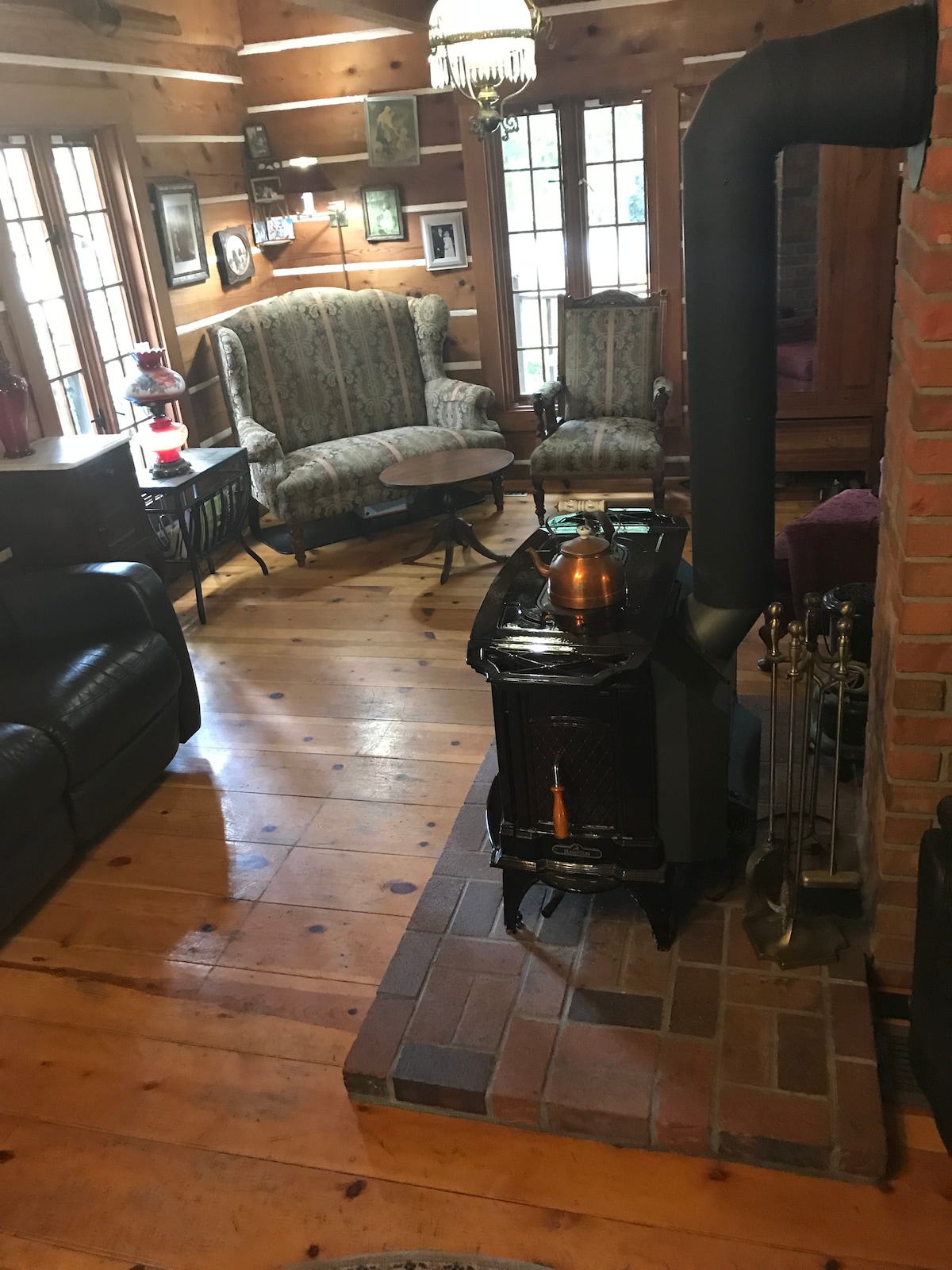 Our log home was built to replicate historical buildings in BC with a roof line borrowed from Quebec. The main floor is an open concept with a kitchen, dining area and living room. Bedrooms and bathroom are upstairs. I have a clawfoot bathtub but do not have a shower. The back yard is large and fenced for kids and a dog to enjoy. Bring your own wood if you want to use the fire pit. Bring pods if you want to use the Keurig or Nespresso.