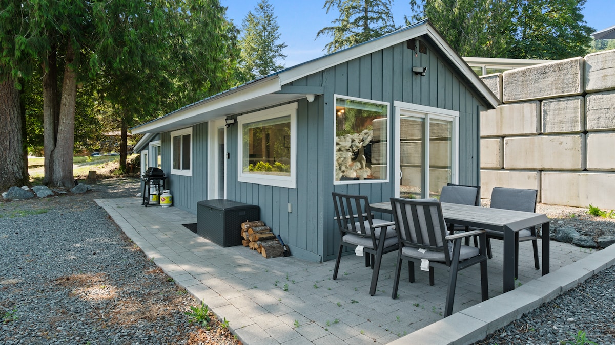 Come and enjoy country life in the heart of a small town. This 1 Bedroom, salon and den, 2 Bathroom is cozy, well appointed and comfortably sleeps four guests. The backyard is a lovely setting with a covered patio seating area. Sit and enjoy watching all sorts of ducks and Great Blue Herons in the creek behind the house. Hosts Dave & Jo-Ann live across the driveway on the property.