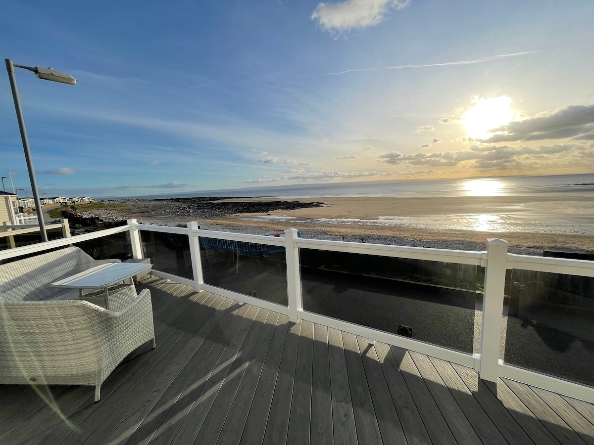 Wonderful location overlooking Newton Bay and Ogmore-by-sea South Wales. This pretty little holiday home is situated just a few sandy foot steps from Newton Beach which is dog friendly all year. Enjoy glorious sea views from the sunny secure deck. Situated at Trecco Bay The town of Porthcawl is a 10 minute walk with an plenty of shops, restaurants and cafes. An ideal base to visit The Gower, Brecon Beacons and Cardiff Bay.