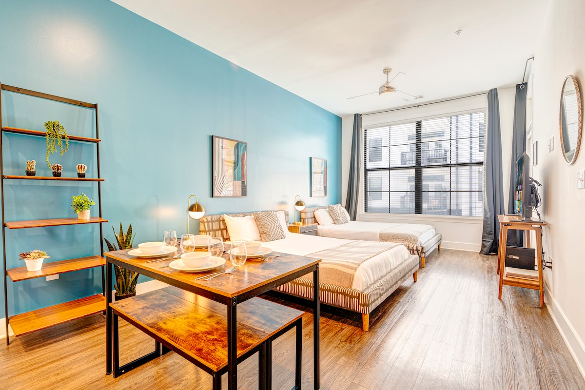 Welcome to Poolside Suite @ The Burnham! ⭐️ "...a perfect distance from Broadway! 12/10!!" * Dec '25: BRAND NEW KING BED! +2 cozy queen beds *SAVE with garage parking for $30/night upon request *Luxurious sheets & WAY too many pillows & throws *High-speed WiFi *Smart TV in every room *Floor-length mirror *Fully-stocked Keurig ⭐️ "...will use this exact location for our next stay." Commons: *Pool & grills *Fitness Center w/ barbell power rack, yoga studio *...& more! Have questions? DM us!