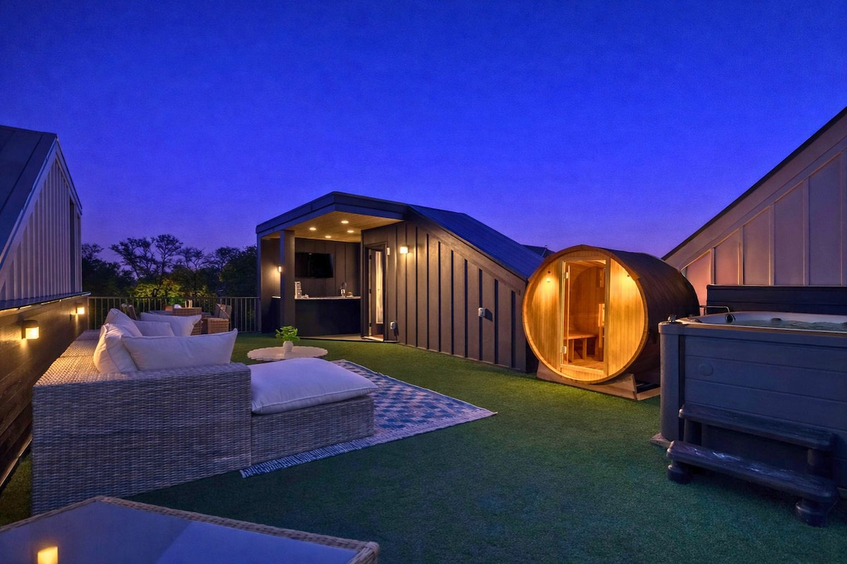 宽敞的豪华房源,屋顶景观 + 热水浴缸、泳池 + 桑拿房!