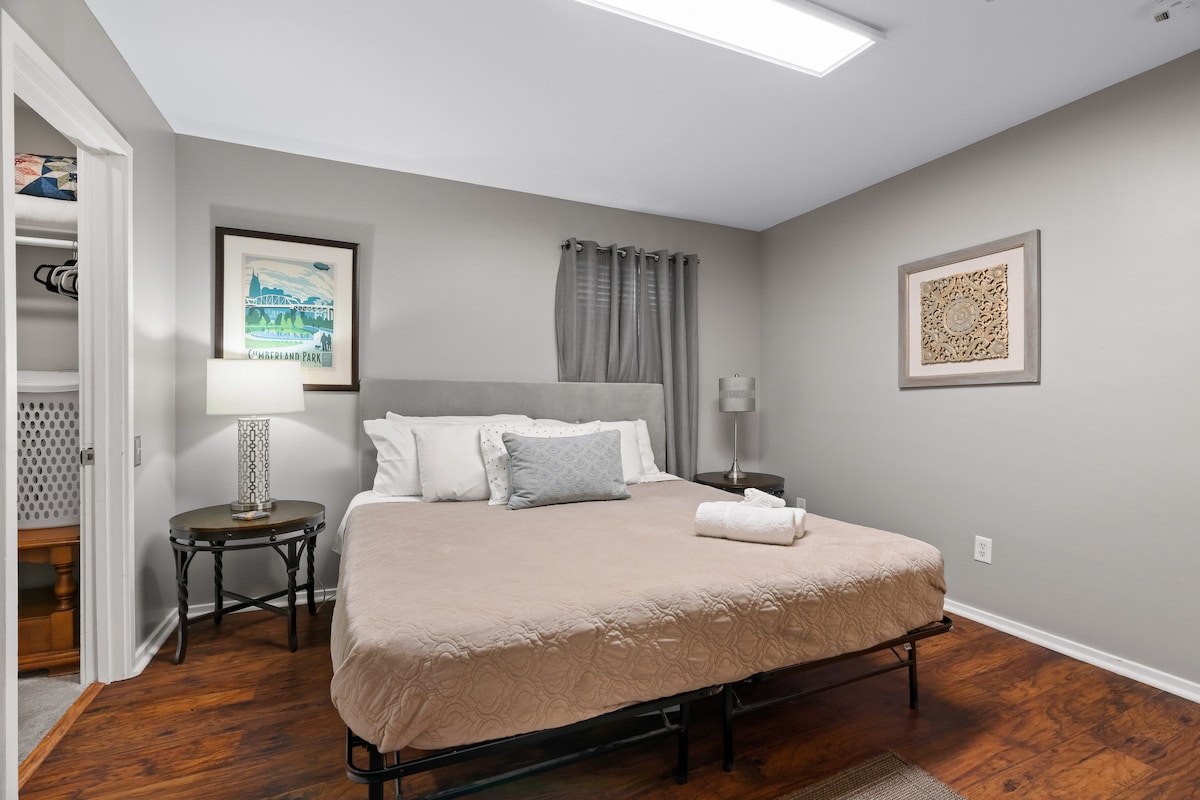 Walk EVERYWHERE!!! Hip 1st Avenue with peaceful views of the Cumberland River in the heart of the city. Located in downtown Nashville, this condo is close to the Broadway Strip, Nissan Stadium, Sounds Stadium, Historic Germantown, Brooklyn Bowl, the Farmers Market and so much more! You’ll love my place because of the location, the coziness, and the beautiful views of the water. My place is good for couples, solo adventurers, and business travelers.