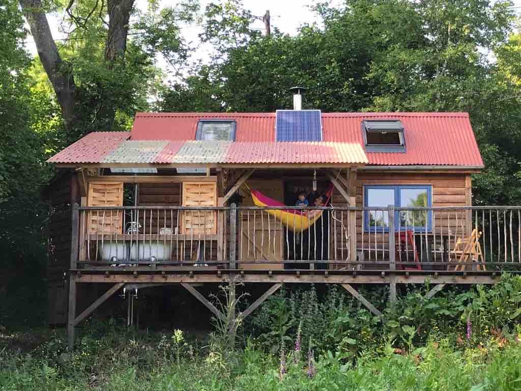 A cabin in the woods, built with timber from our woodland. Within the 100's of acres of Queenswood Country Park. Woodland walks. A cozy fire for winter, a verandah for warm summer nights. Fully fitted kitchen. Comfy king size bed. Come and live with the trees and the birds. Close to the Black and White trail, food lovers Ludlow, Antique hunters Leominster and historic Hereford. National Trust houses and gardens within easy reach. It’s a 40 minute drive to the festival town of Hay on Wye.
