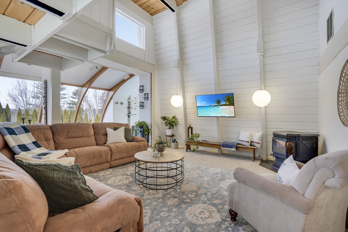 Escape the city and relax at Camp Merryweather. Our A-Frame is perfect for a romantic getaway or a family retreat with the kids and dogs welcome! If you’re a work from home professional looking to escape your normal routine, we’ve got you covered! With a fully equipped work space and reliable high speed internet you can break free from the pressures of the city while still staying connected. Enjoy our hot tub and game room Come experience our slice of heaven for yourself, you won’t regret it!