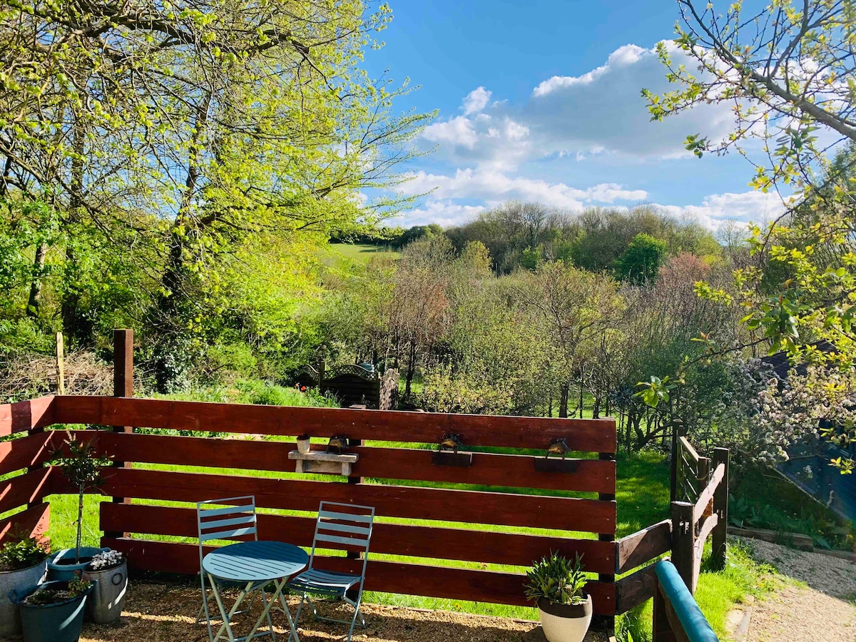 NOTE: We allow dogs strictly by request only. The Ark is situated in a beautiful location with panoramic uninterrupted close views of the sea and less than a minutes walk of Eype beach. The property is ideal for walks along the South West Coastal Path in this designated Area of Outstanding Natural Beauty. The Ark is a contemporary 2 bedroom cedar clad chalet set in a large open green space amongst other individually privately owned quirky beachside properties.