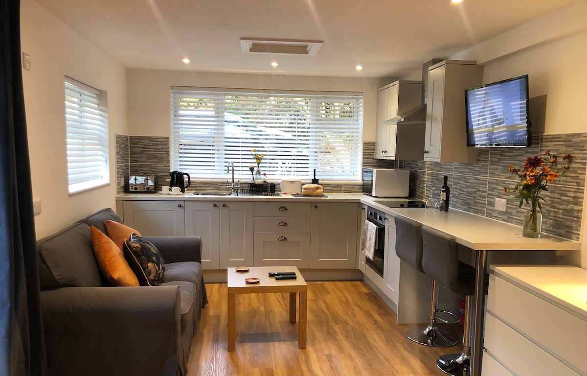 A self contained studio apartment with private off road parking and own front facing garden. Located in the heart of the Jurassic coast in an area of outstanding natural beauty. The annexe is just a short 15 minute walk to West Bay harbour and beaches, here you can also pick up the south west coastal paths. It is also a leisurely 25 minutes stroll to the vibrant market town Bridport. Renowned for its Arts & Culture, pubs and twice weekly antiques market.