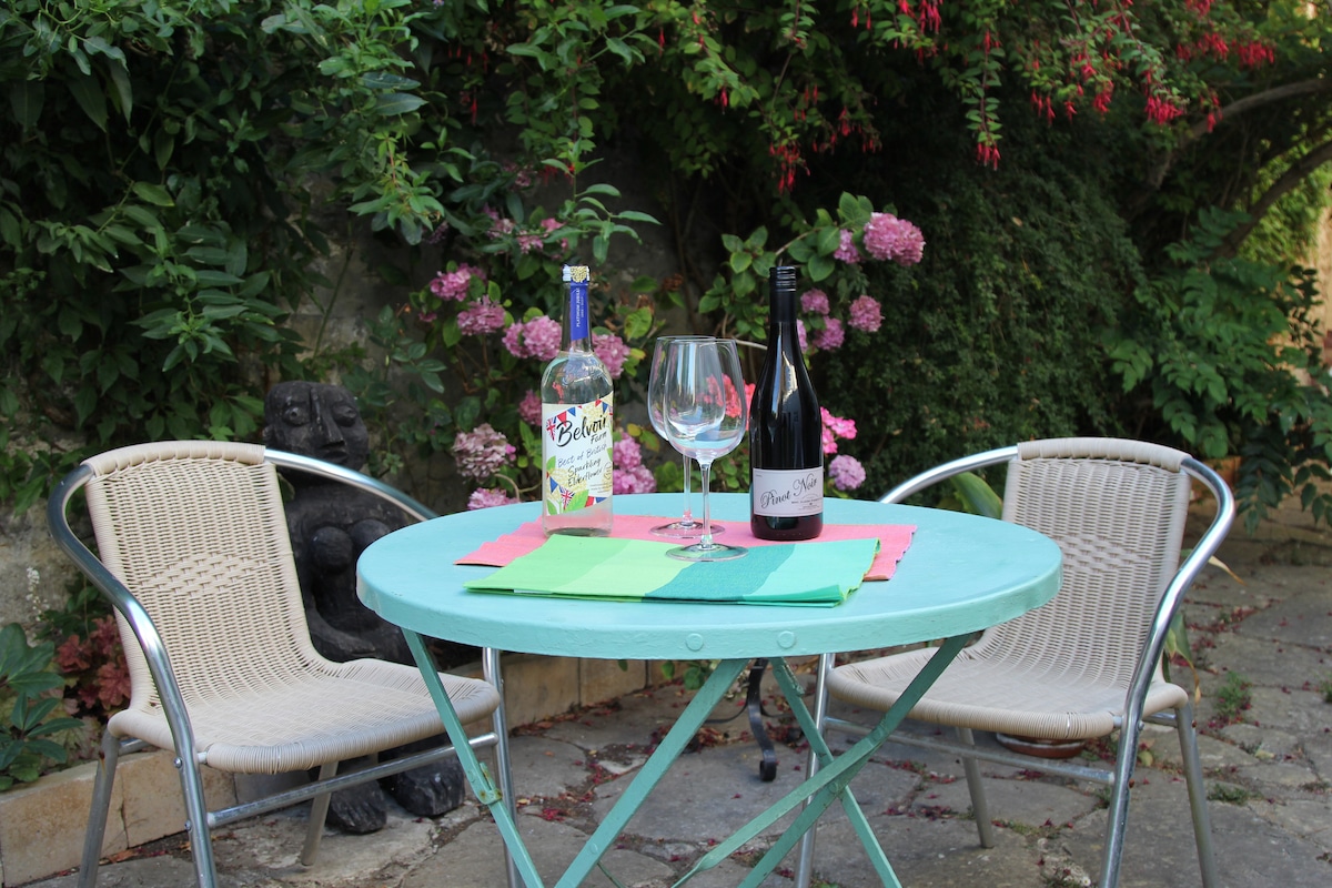 - Spacious, light second floor 2-king bedroom apartment in Grade 2 listed Georgian town house - 2 large bathrooms, baths & showers - 4 adults - Well-equipped kitchenette - Danish/Norwegian mid-cent modern furniture - For younger guests, dino-themed furn, books/games - Courtyard seating, fire pit - Secure cycle/motorbike - Heart of Bridport, near rests/shops/street markets - West Bay beaches 1.2 miles, via off-road paths; 1 mile SW Coast Path - No cleaning fee - Discounts 3+ nights